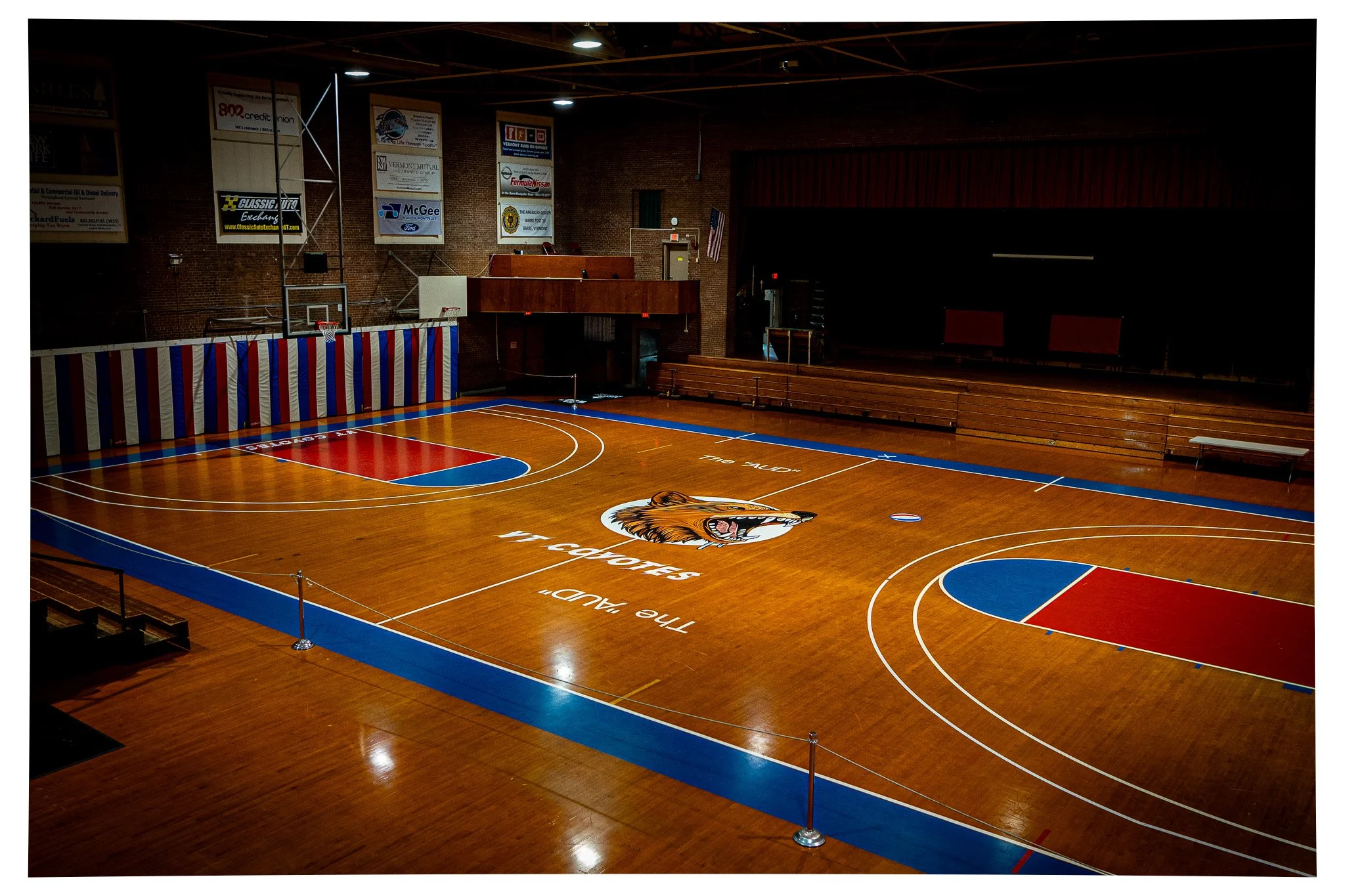 On Tuesday, the Vermont Coyotes made history by placing their official team logo at center court inside the legendary Barre Auditorium—a moment that marks a new era in professional basketball in Vermont. For the first time in the Aud’s 85-year legacy, the hardwood floor now proudly displays the identity of a pro basketball team. This iconic venue has hosted countless Vermont high school championships and community events, but never before has it featured a professional team logo at its center. The Vermont Coyotes, an emerging franchise in the American Basketball Association (ABA), are proud to call Barre home—and this moment makes that official.